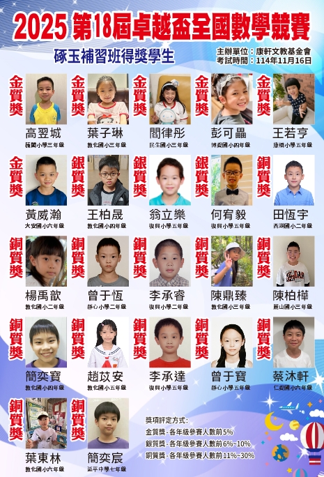 狂賀!本校學生參加2025第十八屆卓越盃全國數學競賽成績優異 !!!